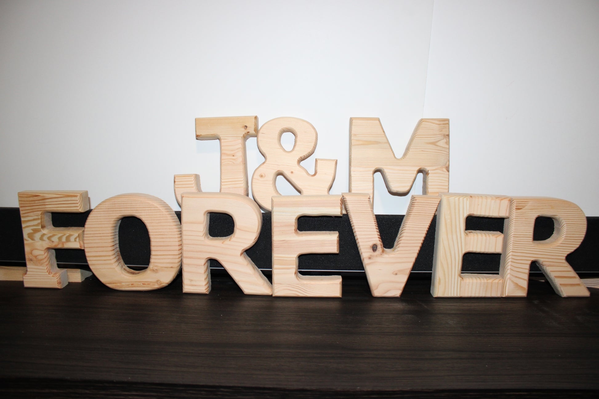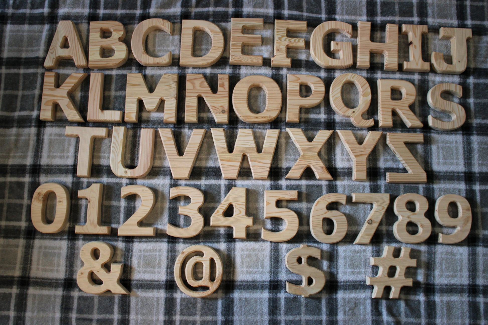 Kids initials, decorative words around the house, family name, house numbers. These big wooden letters are great for all kinds of things. We leave these unfinished so you, or the kids can color, paint, stain or whatever you want with them. They are flat on the back with rounded edges on the front and flat on bottom so they can stand on their own. At 1-inch thick, these are much thicker and heavier than what you might find in the big craft stores. They are also made out of solid pine, not balsa or plywood. We offer all letters and numbers along with the & $ # @ symbols. They are designed to be stand-alone, but we can put keyholes in the back for hanging on request.
